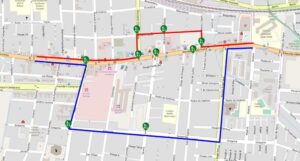 Los desvíos de tránsito, tanto para transporte particular como para buses y taxis colectivos de transporte público serán por: