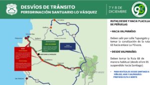 Estos serán los desvíos que se aplicarán este domingo y lunes por Festividad de Virgen de Lo Vásquez 2025
